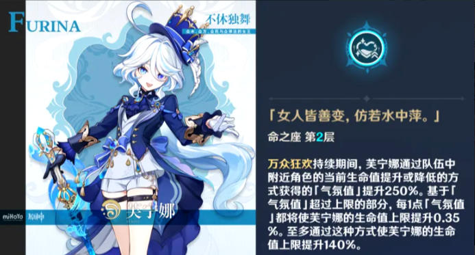 气氛值超出上限的部分,每1点可提升芙宁娜0.35%生命值上限,至多提升140%。