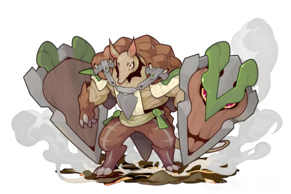 巨盾铠犰基础信息:巨盾铠犰编号3205,属性为石,身高1.7m,体重200kg,颜色为褐,经验类型164,喜好保养身上的铠甲和盾牌,其简介为“心中的正义即是最强大的盾牌”。获取方式是通过第三十三届天梯赛达到高级段位获得。它的种族值方面,精力165、物攻135、物防160、魔攻50、魔防128、速度60,这样的数值决定了它在战斗中的定位偏向于防御和物攻输出。