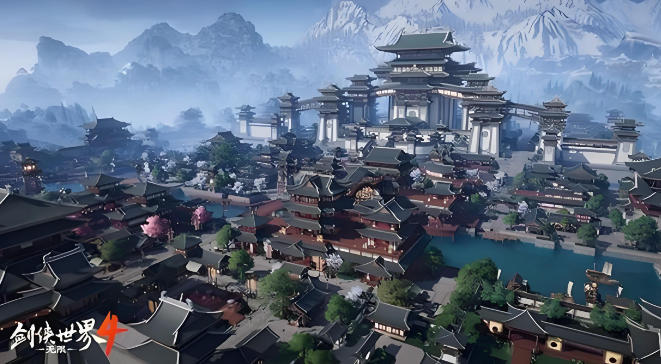 三、游戏大世界与玩法:多元体验,挂机适配场景《剑侠世界4:无限》打造沉浸式国风江湖,玩法覆盖重度战斗与轻度休闲: