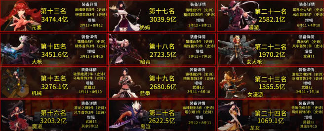 代表职业:红眼(5942.0亿)、剑魔(5971.2亿)、武神(4170.6亿)。