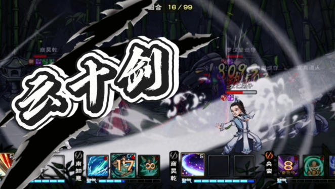 10重(无极意・主动):消耗5内力,造成1100点基础伤害,所有招式给敌人叠加“剑斩”(受疗-10%、防御-5%,最高10层,持续3回合)。