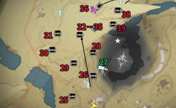 收集亮点:包含2个声匣,40-50号收集点分布较分散,需跨区域移动寻找;